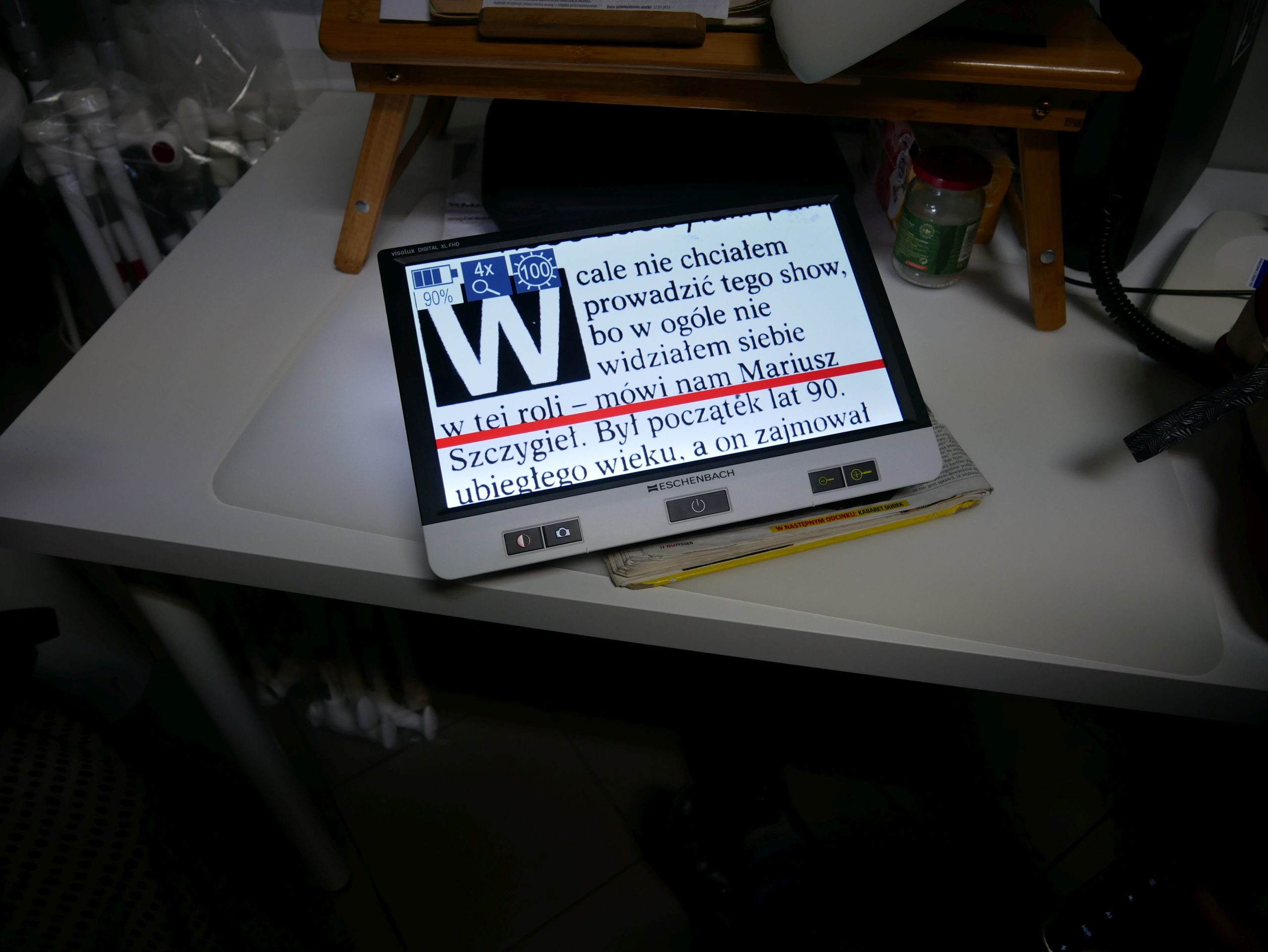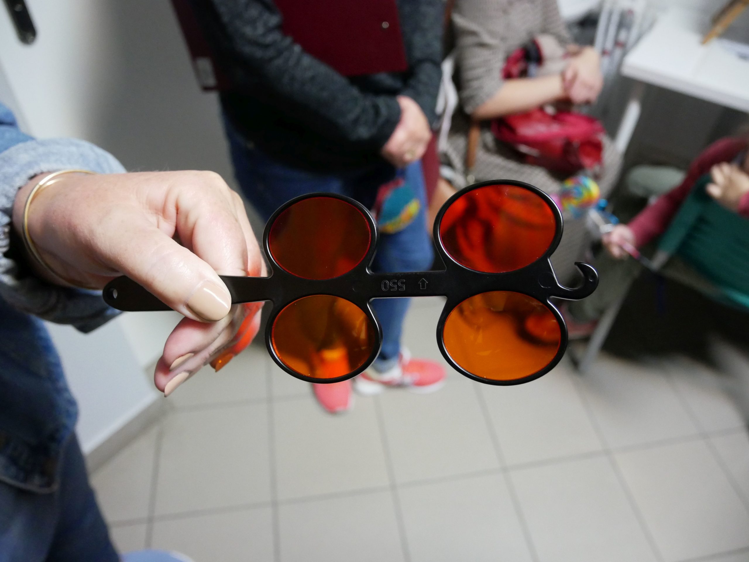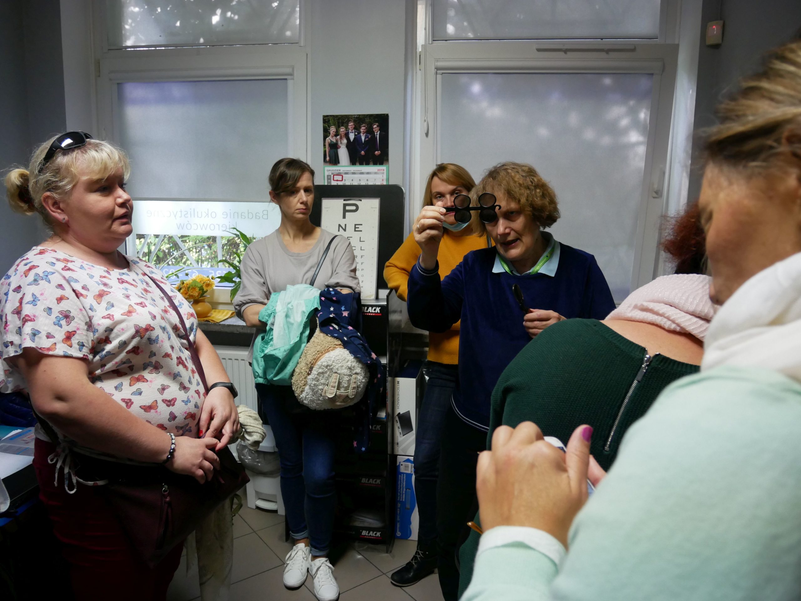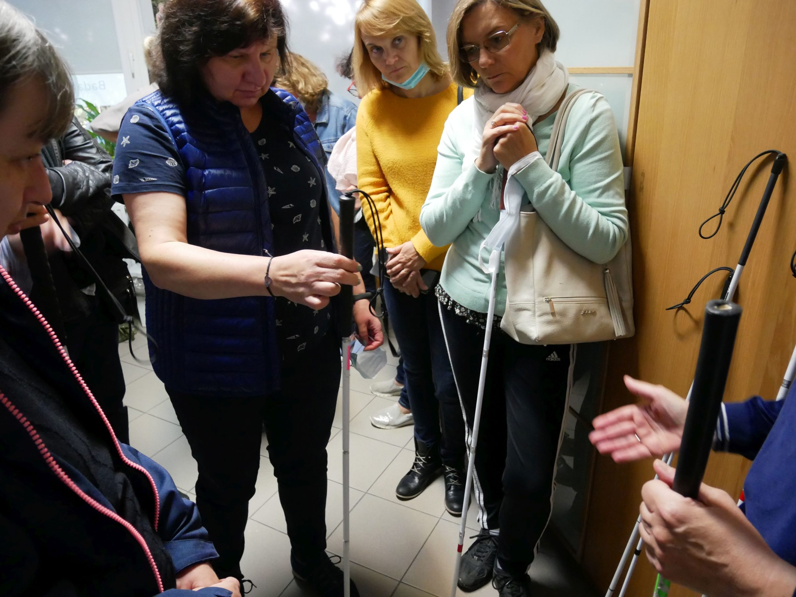 Ostatniego dnia instruktorów orientacji przestrzennej czekała wizyta w Centralnej Przychodni Leczniczo-Rehabilitacyjnej PZN, gdzie mogli zapoznać się z różnego rodzaju pomocami optycznymi. Specjaliści pracujący w przychodni pokazywali wiele modeli białych lasek, okulary pryzmatyczne czy różnokolorowe filtry medyczne, które mogą okazać się pomocne zwłaszcza pacjentom z nadwrażliwością na światło.