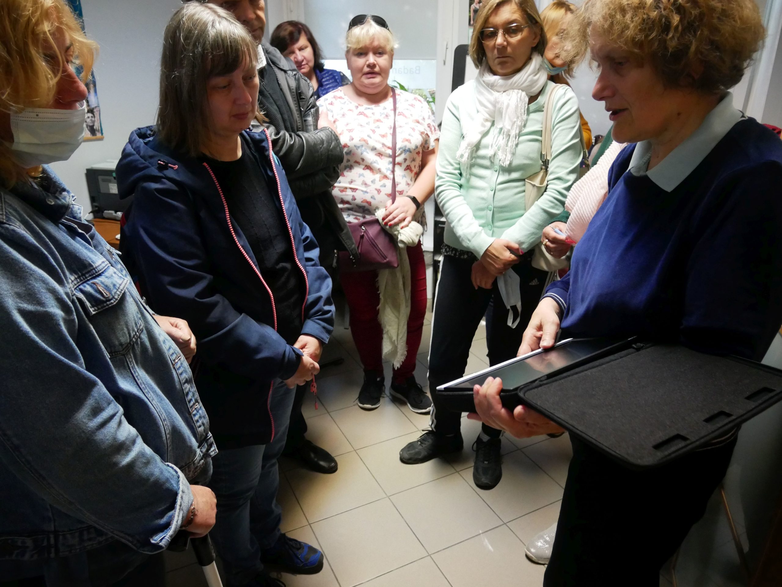 Ostatni zjazd, który trwał od 18 do 22 września br., skupił się przede wszystkim na pogłębieniu wiedzy z zakresu bezwzrokowej obsługi smartfonów, korzystania z aplikacji mobilnych pomocnych dla osób z dysfunkcją wzroku oraz poznania systemów komunikacyjnych i nawigacyjno-orientacyjnych: NFC i Totupoint. Uczestnicy mieli także okazję przećwiczyć zdobytą wiedzę w praktyce w przestrzeni publicznej z wykorzystaniem opasek zasłaniających oczy i białych lasek.