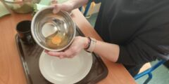 - kuchnia gazowa, w tym: przygotowanie do jej obsługi, środki ostrożności; zapoznanie się z kuchenką, centrowanie naczyń na palniku; przygotowanie obiadu, nauka smażenia (rozbijanie jajka, rozdzielanie białka od żółtka, przygotowanie ciasta naleśnikowego, smażenie naleśników, przygotowanie kurczaka, smażenie kawałków kurczaka) (ćwiczenia),
