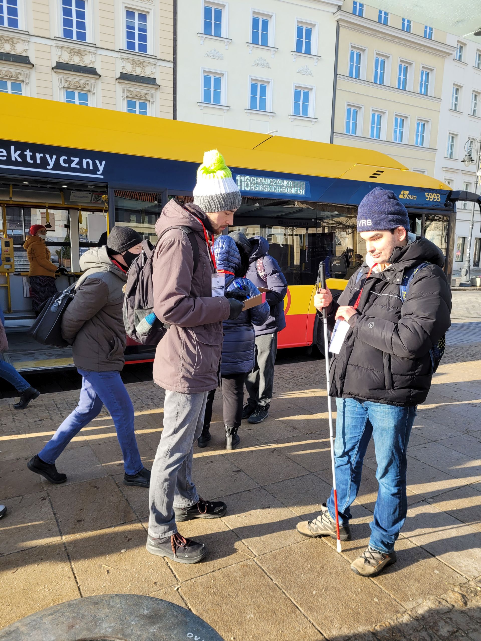 ZTM zlecił testy zorganizowane przez Aleet, w których wzięło udział Centrum Rehabilitacji Polskiego Związku Niewidomych oraz grupa niewidomych i słabowidzących użytkowników. Rozwiązanie to z powodzeniem funkcjonuje w innych miastach, np. w Barcelonie, Nowym Jorku czy Singapurze. Jednak chciano sprawdzić, czy aplikacja poradzi sobie w trudnych warunkach atmosferycznych w Polsce.