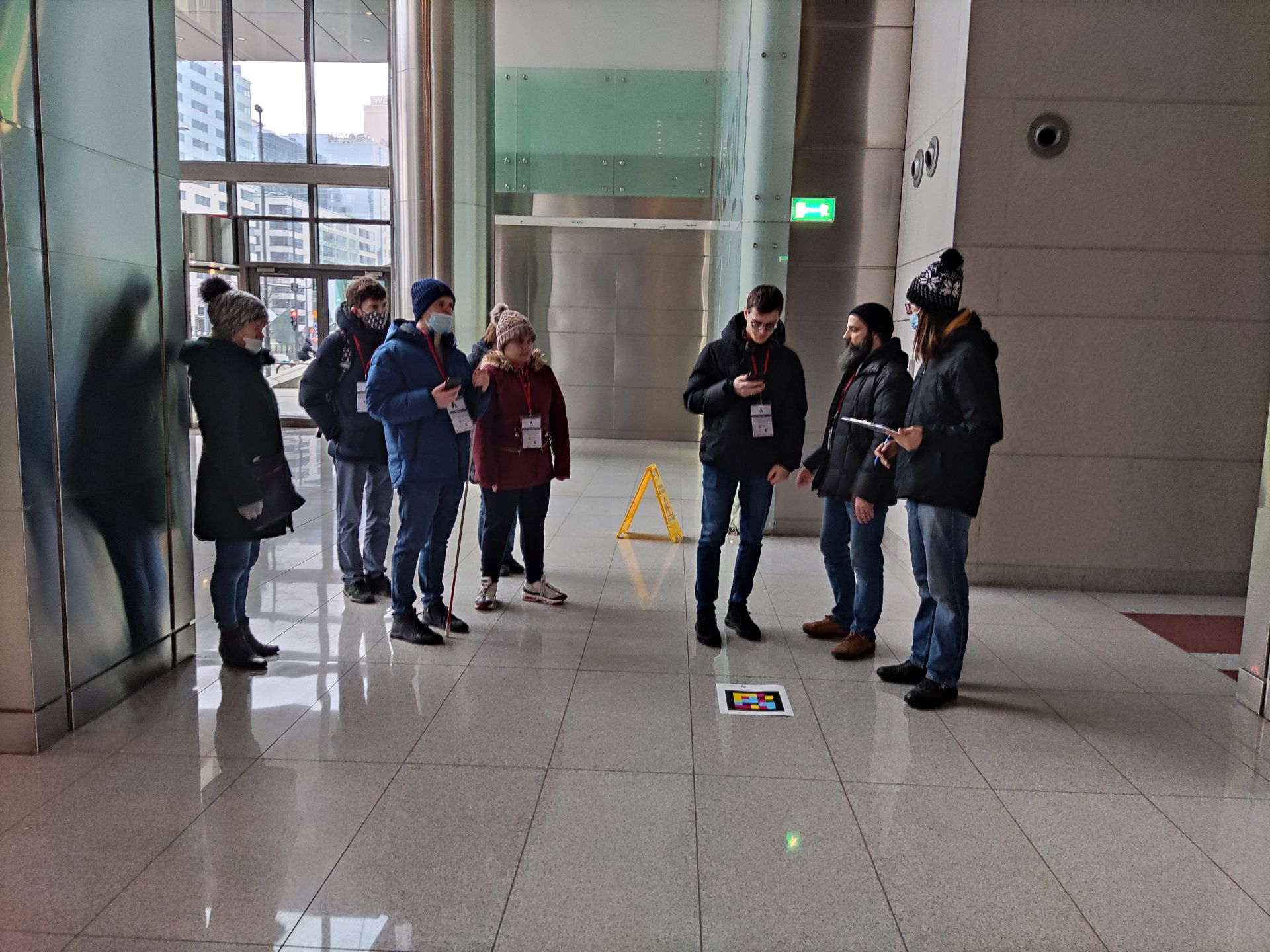 Testy odbyły się w dniach 16–25.01, więc użytkownicy musieli borykać się z wiatrem, opadami śniegu oraz deszczu. Wybrano pięć lokalizacji: Węzeł Politechnika, Węzeł Rondo Wiatraczna, Rondo ONZ, Stare Miasto i Plac Zamkowy. Testerzy spotykali się w wybranych miejscach od 7 do 21, także w weekendy. Chcieli sprawdzić, jak aplikacja działa przy różnym natężeniu światła oraz ruchu. Wszystko zostało poprzedzone szkoleniem wprowadzającym, które odbyło się 12 i 14 stycznia w siedzibie PZN.