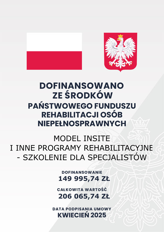 Plakat dotyczący zadania “Model INSITE i inne programy rehabilitacyjne – szkolenie dla specjalistów 2025”
